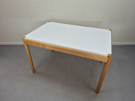 Tavolo di design scandinavo, in rovere con piano in formica.