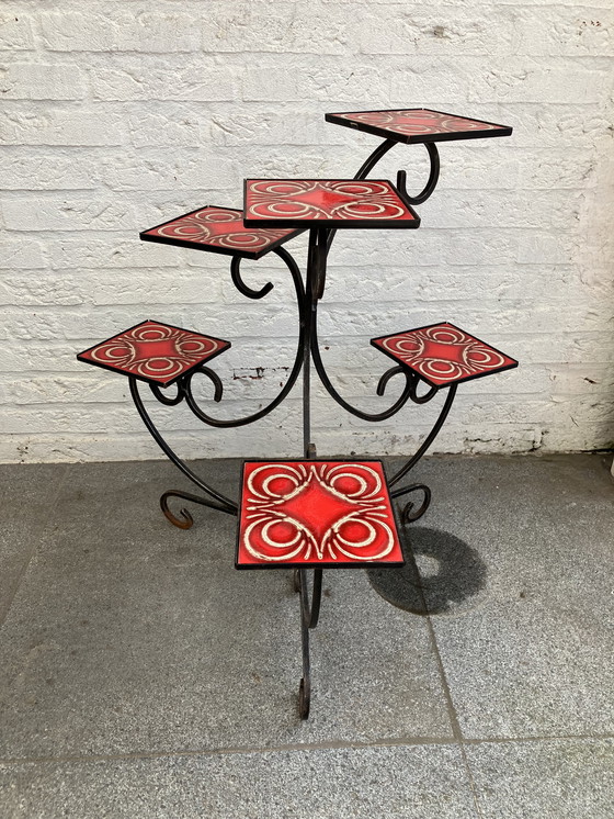 Bellissimo tavolo vintage in ferro per piante con 6 ripiani, adatto per uso interno ed esterno. Bello con alcune piante o altre decorazioni.