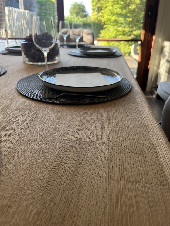 Questo tavolo ha avuto nuova vita: è stato ricavato da un antico tavolo in rovere massiccio, ma completamente rielaborato in un pezzo moderno: