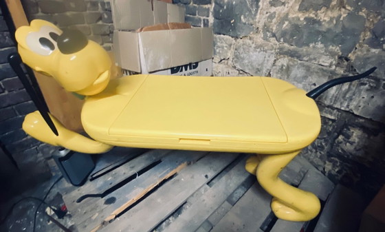 Tavolo/tavolo da gioco per bambini Pluto, progettato da Pierre Colleu per Disney, Starform Francia, anni '80. Materiali: resina laccata, legno laminato, plastica.