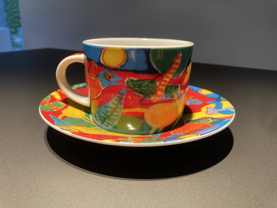 Tazza e piattino di Corneille. Entrambe le parti recano il timbro di Corneille e L'été Commençant. Condizioni perfette, usato poco