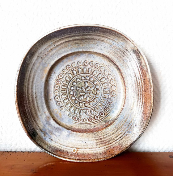 Ciotola in gres a forma libera in stile brutalista, firmata intaglio sul retro Ferrières, circa 1970. Motivo a rosetta e fiore al centro. Gres smaltato nei toni del blu e del marrone metallizzato. In ottime condizioni, si noti una piccola scheggiatura sul bordo. 28 x 7 cm. Spedizione pulita, veloce e accurata.