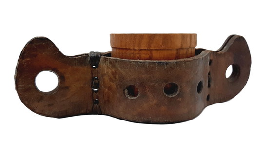 Questa tazza vintage in legno, accompagnata da una borsa in pelle, emana un fascino rustico che evoca un'epoca passata. Realizzata con cura, la tazza in legno mette in risalto la bellezza naturale del suo materiale, mentre la borsa in pelle aggiunge un tocco di robusta eleganza. Perfetto per i collezionisti o per chi cerca un pezzo decorativo unico, questo set è una testimonianza di artigianalità senza tempo.