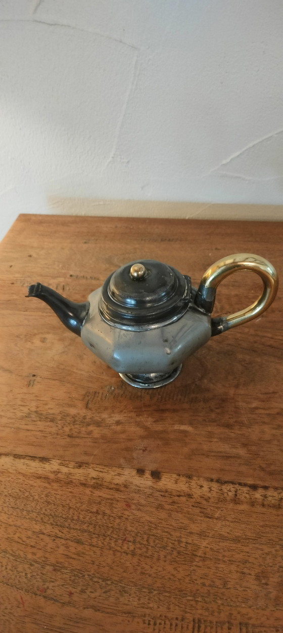 Scoprite l'eleganza senza tempo di questa splendida teiera, realizzata dalla rinomata Broadhead & Co di Sheffield tra il 1853 e il 1900. Questo autentico pezzo vintage, in resistente metallo Britannia, emana un fascino classico che impreziosisce il vostro rito del tè. I dettagli dorati sul manico e sul pomello aggiungono un tocco di lusso all'insieme. Aggiungete un pezzo di storia alla vostra collezione e godetevi la raffinata bellezza che questa teiera ha da offrire.