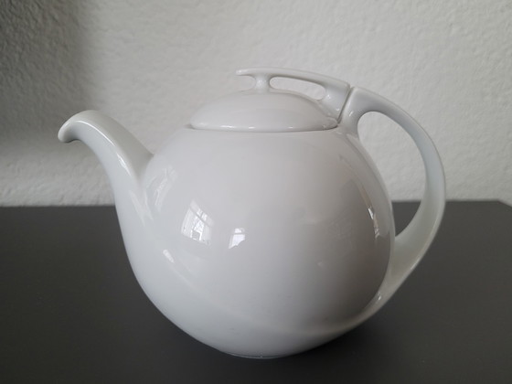 Questa teiera monodose, in ottime condizioni, è realizzata in porcellana bianca ed è stata realizzata per Douwe Egberts.