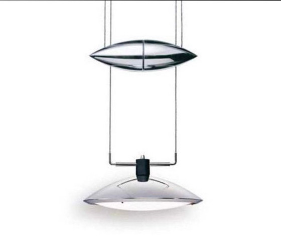 La 20 UP è la versione rotonda più piccola della serie Tai di Tobias Grau. Come tutti i modelli di questo produttore, è una lampada sorprendente con un design distintivo e un ingegnoso sistema di sospensione. La lampada è particolarmente adatta a un tavolo da pranzo rotondo in legno con un diametro massimo di 120 cm. Per tavoli più grandi, ad esempio, una coppia di lampade è la soluzione perfetta. La lampada è in ottime condizioni e ha un attacco GY6.35, disponibile anche in versione LED a 12 volt. La lampada ha un diametro di 20 cm e un'altezza di 10 cm. Sono disponibili più lampade; il prezzo unitario è indicato.