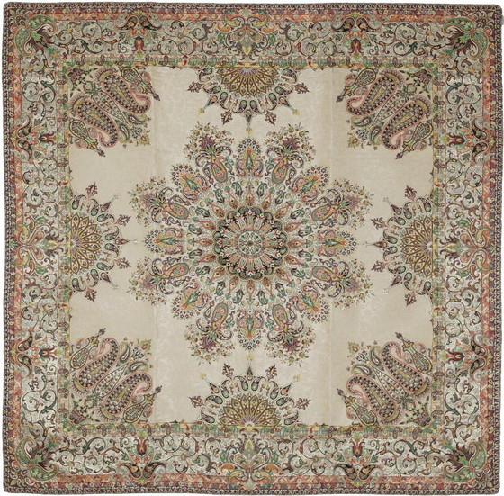 Tovaglia orientale fatta a mano, finemente lavorata con fili di seta, 100 x 100 cm