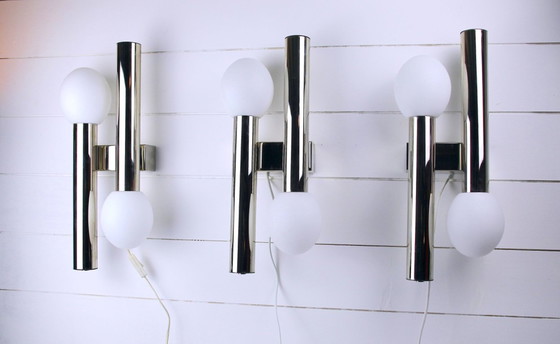 Tre applique in metallo cromato, di Sciolari , Italia 1970
