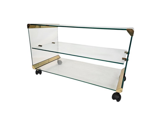 Italiano: Produttore: GR design Design: Pierangelo Galotti & Luigi Radice Dimensioni: altezza 49 x lunghezza 80,7 x profondità 40 cm Origine: Italia Materiale: vetro - ottone Periodo: anni '70 Marchio: etichetta di fabbrica Condizioni: Buone condizioni - minimi segni di utilizzo e usura coerenti con l'età di questo oggetto - retro, lastra di vetro inferiore: linea sottilissima di circa 6,3 cm sul lato - altrimenti bellissime e originali condizioni Tavolino su ruote nere di Galotti & Radice Italia anni '70. Realizzato in vetro di alta qualità e parti di collegamento in ottone. Ottime condizioni. Può essere utilizzato anche come tavolino da caffè o mobile TV. Sostenibile e rispettoso dell'ambiente Completando i tuoi interni con oggetti vintage, sei consapevole dell'ambiente. Non è necessario utilizzare nuove materie prime per questo prodotto. Se scegli il vintage, usi ciò che è già lì e questo lo rende sostenibile. Potresti non dare a questi oggetti una seconda, ma anche una terza o quarta vita. I prodotti vintage sono di alta qualità e durano diverse vite per un motivo. Dietro ogni prodotto vintage c'è una storia. I segni di usura, spesso minimi, offrono uno scorcio sulla vita del precedente proprietario. L'entità di questi segni di usura è indicata nella descrizione. Le foto fanno parte di questa descrizione, quindi si prega di esaminarle attentamente. Gli articoli vintage (ovvero: usati) a volte presentano variazioni di colore, usura irregolare e/o normale usura. Si prega di tenerne conto al momento dell'acquisto. Questo articolo deve essere ritirato - La spedizione nei Paesi Bassi, in Belgio e in Francia è negoziabile con un costo aggiuntivo.