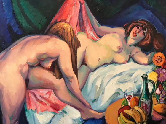 Origineel schilderij (olieverf op doek) van Freek van den Berg (1918-2000), gesigneerd en inclusief lijst.