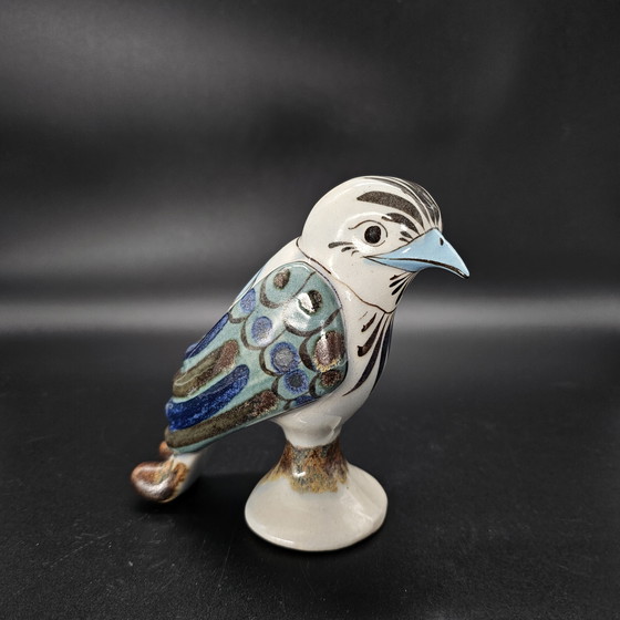 Bellissima statuetta di uccello disegnata da Ken Edwards per El Palomar, Messico. Realizzata nel tradizionale stile ceramico messicano Tonala e decorata con motivi floreali dipinti a mano. Nei toni del grigio chiaro, verde, blu scuro e marrone. Condizioni perfette!