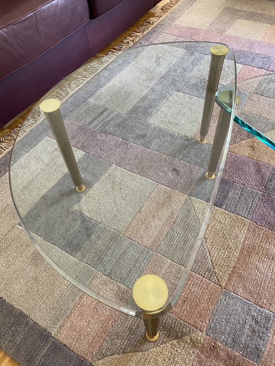 Un elegante tavolino da caffè WK 825; ottone lucido e vetro cristallo