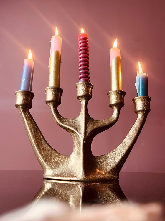 Unico nel suo genere! Candeliere in ottone Van Gilde di metà secolo.
