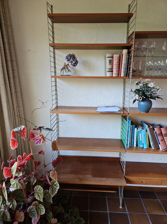 Questa splendida libreria a parete String unisce funzionalità e un intramontabile stile Mid-Century Modern. Il design modulare offre soluzioni di contenimento versatili, perfette per libri, decorazioni e oggetti in vetro. La combinazione di legno, metallo e vetro crea un look elegante che si adatta a qualsiasi interno.