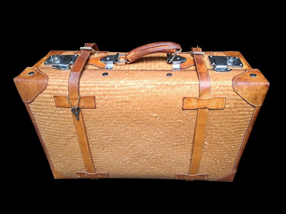 Questa valigia vintage degli anni '50/'60 è uno splendido esempio di artigianato. Realizzata in rafia e pelle, emana un fascino classico. La valigia è dotata di chiusure in metallo e di una robusta maniglia, che la rendono ideale per uso decorativo o come accessorio da viaggio unico. L'interno foderato in tessuto offre ampio spazio per gli effetti personali. Un must-have per gli amanti dello stile retrò.