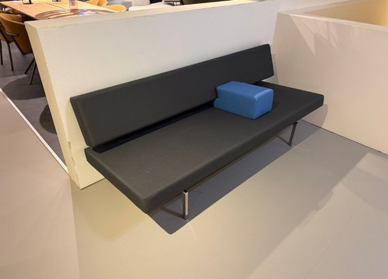 Il divano Vandersluis 540 è un classico della collezione Vandersluis. È salvaspazio e ha linee pulite. È disponibile in pelle, similpelle e tessuto ed è dotato di piedini. Può essere utilizzato anche come divano letto. Divano letto + bracciolo Van der Sluis 540. Il divano è largo 190 cm e rivestito in tessuto Fighter 60083 grigio scuro.