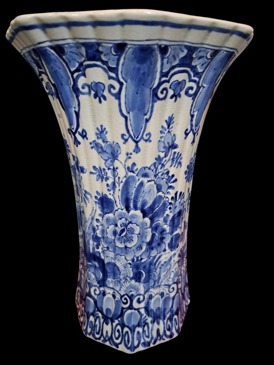 Splendido vaso in ceramica blu di Delft con classici motivi floreali. Realizzato in porcellana di alta qualità, questo vaso mette in risalto i caratteristici colori blu e bianco della ceramica blu di Delft. Un pezzo elegante, perfetto per esporre fiori o come elemento decorativo per i vostri interni.