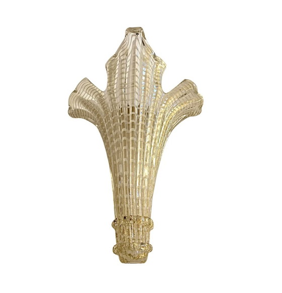 Vaso da parete realizzato da un unico grande pezzo di vetro di Murano con inclusioni d'oro, realizzato con la raffinata tecnica del "Cordonato" dal rinomato Barovier & Toso a Murano, Italia, intorno al 1950. Questo vaso unico trasuda un'eleganza senza tempo e combina la tradizionale artigianalità italiana con l'aspetto lussuoso degli accenti dorati. Include un gancio in ottone per fissare facilmente il vaso alla parete. Un vero oggetto da collezione e una splendida aggiunta a qualsiasi interno. Dimensioni: Altezza: 40 cm Larghezza: 30 cm Profondità: 21 cm Paese: Italiano Periodo di design: Anni '50 Materiale: Vetro, Ottone Designer: Barovier & Toso Condizioni: Ottime condizioni
