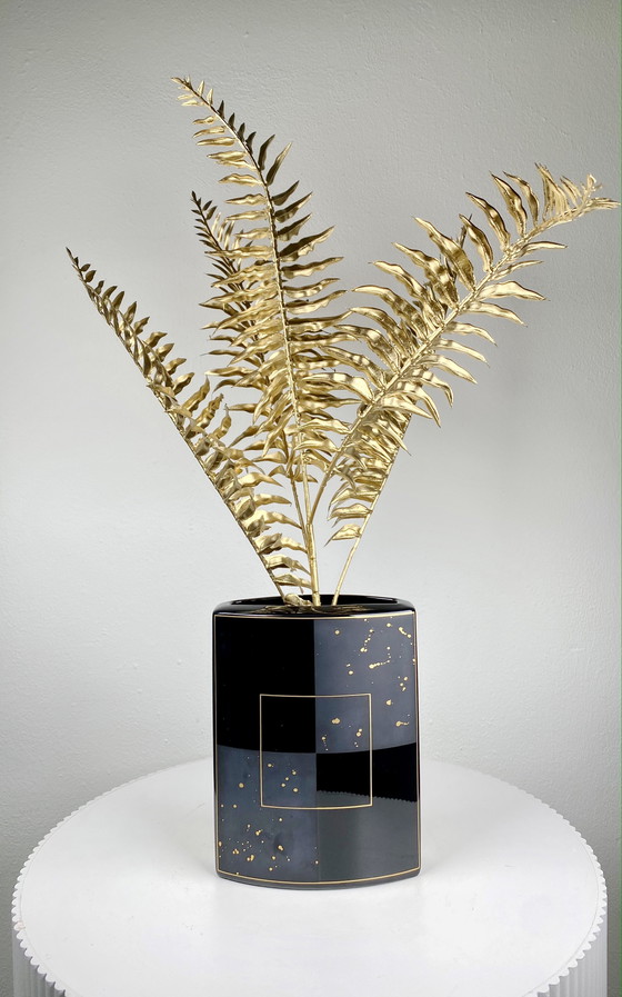 Vaso geometrico vintage Rosenthal Studio-Linie nero e oro - Elegante arredamento per la casa in stile postmoderno tedesco
