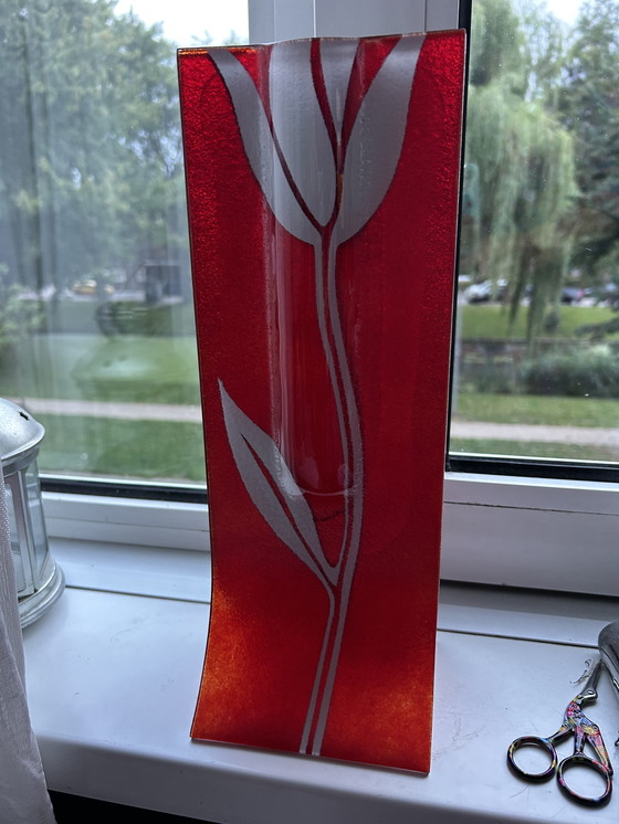 Vaso in vetro artistico fuso d'epoca Carneol, tulipano