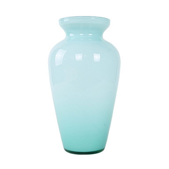 Un vaso decorativo in vetro di grande impatto e di alta qualità. La sua forma slanciata e armoniosa, con un bordo ampio e leggermente svasato, ne esalta splendidamente le proporzioni, conferendogli un aspetto eccezionalmente elegante e moderno. La delicata gradazione di tonalità e la morbida diffusione della luce sulla superficie del vetro gli donano una profondità straordinaria: il vaso si integra perfettamente sia in interni in stile moderno di metà secolo che in ambienti più minimalisti e contemporanei. Ideale come pezzo singolo o per esporre rami lunghi e fiori.