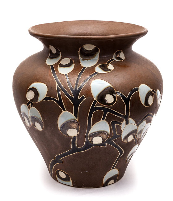 Vaso Art Déco marrone con motivo floreale, circa 1930