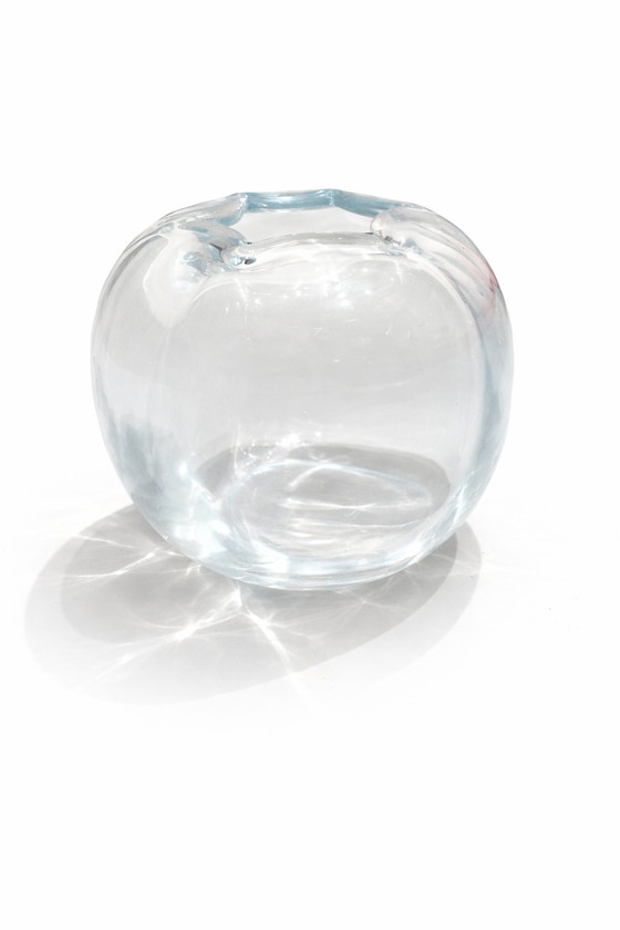 La sua caratteristica forma sferica a "lente" è coronata da un'apertura scultorea a forma di stella, che crea spettacolari giochi di luce e riflessi all'interno del cristallo spesso e puro. Un pezzo minimalista e versatile, ideale come vaso solifleur, portacandele o oggetto d'arte a sé stante.