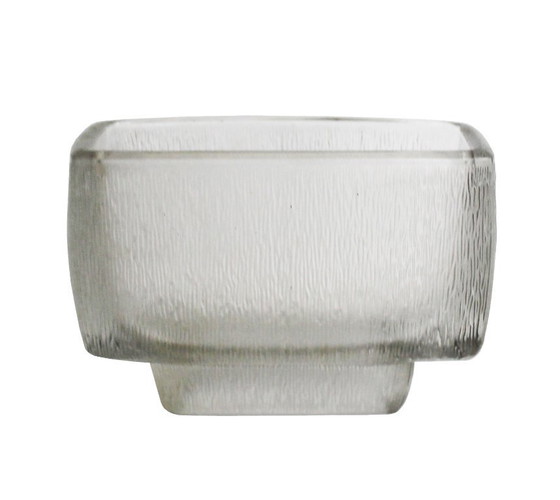 Prodotto da Rudolfova huť, l'oggetto è realizzato in cristallo pressato, successivamente sabbiato e acidato, conferendo alla superficie la sua caratteristica texture opaca e delicatamente granulare. Il corpo quadrato si erge da una base stretta, creando un sottile senso di elevazione e tensione architettonica – un tema ricorrente nell'opera di Vízner, dove la forma è ridotta alla sua geometria essenziale.