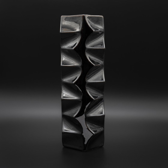 Vaso unico HEINRICH FUCHS "ARCHAIS" HUTSCHENREUTHER Retro OP ART in smalto metallico