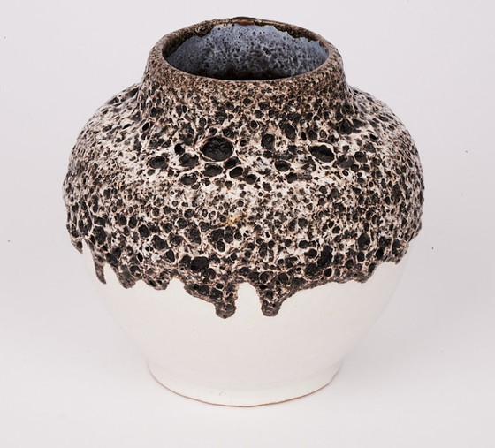 Questo raro vaso vintage Fat Lava di Emons & Söhne, realizzato per ES Ceramics negli anni '60, è un vero pezzo da collezione. La caratteristica smaltatura Fat Lava conferisce al vaso una superficie unica e strutturata che ricorda la lava solidificata, aggiungendo un tocco speciale a qualsiasi ambiente.