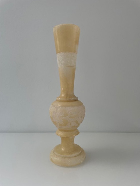 Vaso vintage in alabastro con dettagli decorativi – 32 cm