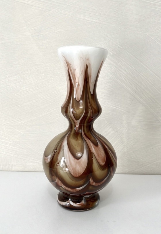 Vaso vintage in opalino di Murano marrone e bianco degli anni '70