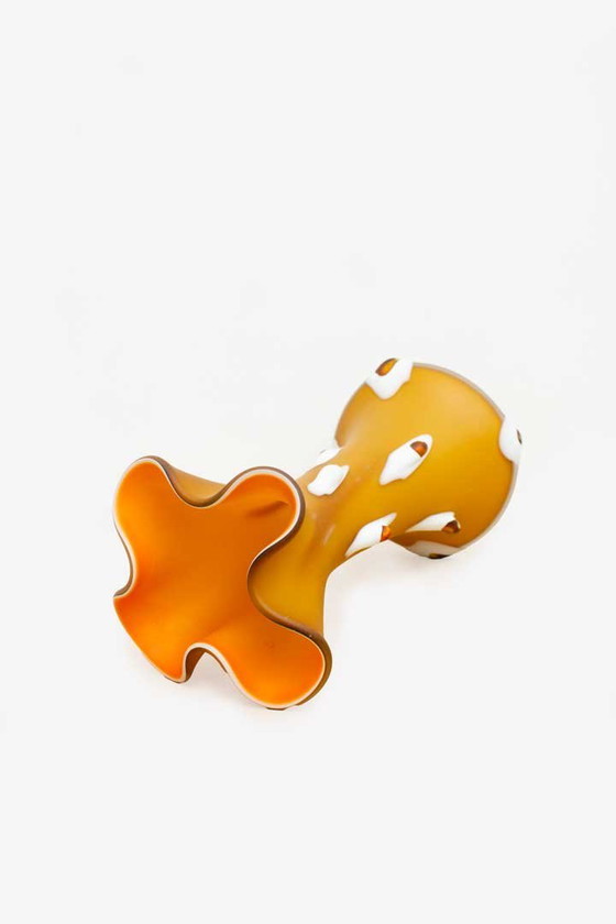 Un vero spettacolo! Questo vaso vintage soffiato a mano di Prokuplje, nell'ex Jugoslavia, unisce l'eleganza artigianale a una forma giocosa e organica. La vivace tonalità arancione, abbinata al vetro bianco e ai dettagli a goccia, crea un effetto quasi surreale, come se il vaso si stesse sciogliendo o prendendo vita. Oggigiorno, i vasi in vetro originali di Prokuplje sono difficili da trovare e sono amati dagli amanti del vintage e del design. Quindi, questo vaso non è solo un pezzo di stile, ma anche un pezzo di storia del design!