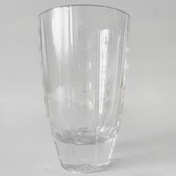 Vaso vintage J.G. Durand Cristal D'Arques in cristallo trasparente con motivo punteggiato a taglio verticale, anni '80