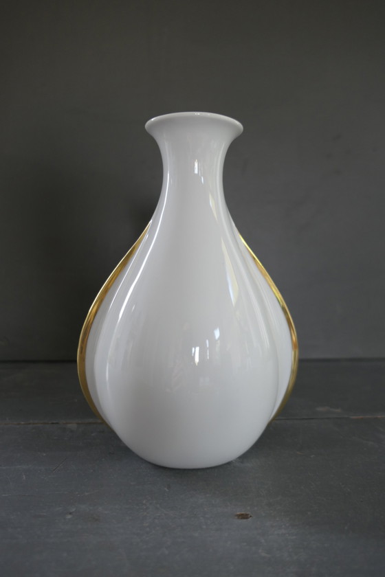 Vaso vintage Seltmann Weiden Bavaria W. Germany in bianco e oro. Dimensioni: L x P x A = 15,5 x 10,5 x 22 cm. In ottime condizioni.