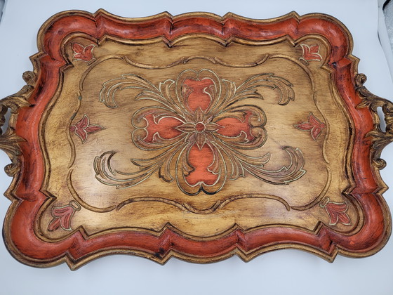 Image 1 of Vassoio fiorentino. Oro con colori arancio/rosso.