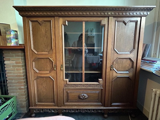 Questa splendida libreria/vetrina, probabilmente degli anni '30, aggiunge un tocco di nostalgia ai vostri interni. Con le sue eleganti ante in vetro e le incisioni dettagliate, è un vero e proprio colpo d'occhio che offre stile e funzionalità.