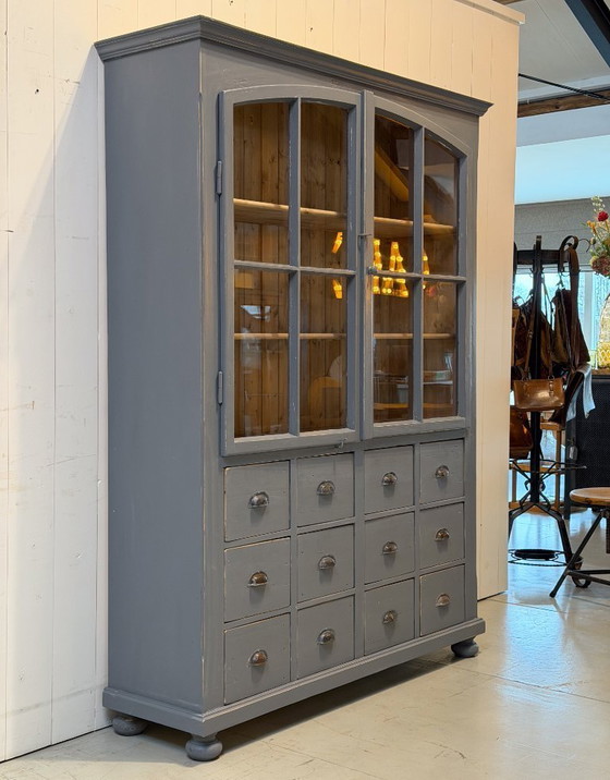 Vetrina grigia con ante in vetro e 12 cassetti | Mobile buffet