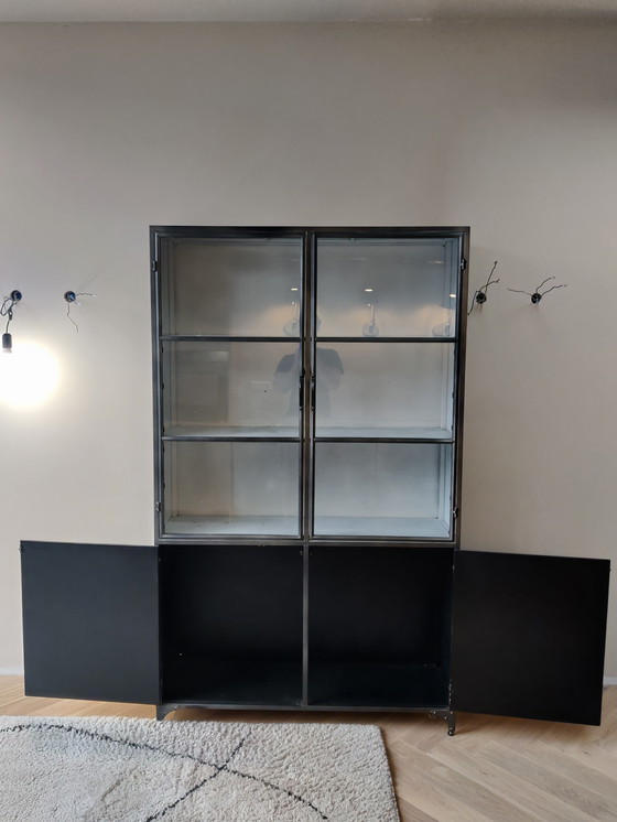 Questa vetrina industriale in metallo di Loods5 è un'aggiunta elegante e funzionale a qualsiasi interno. Il mobile ha un aspetto robusto con ante in vetro e maniglie in metallo. Ideale per esporre oggetti decorativi o stoviglie. Il mobile offre un ampio spazio di archiviazione e si adatta perfettamente a un interno moderno o industriale.