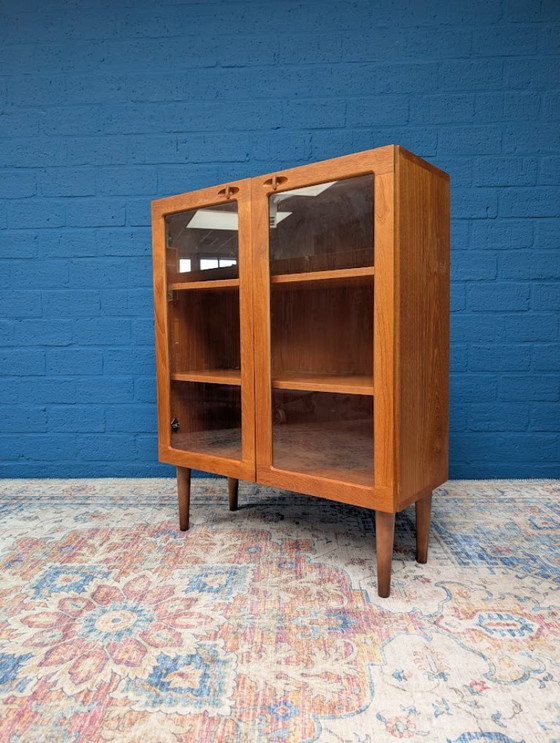 Affascinante vetrina di metà secolo. Prodotta da Bramin Møbler, riconoscibile dalle maniglie.