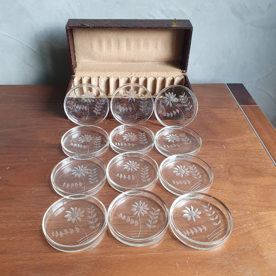 Elevate la vostra esperienza culinaria con questi 12 raffinati sottobicchieri in cristallo vintage. Ogni pezzo è realizzato con cura e presenta un delicato disegno floreale che aggiunge un tocco di eleganza a qualsiasi tavola.