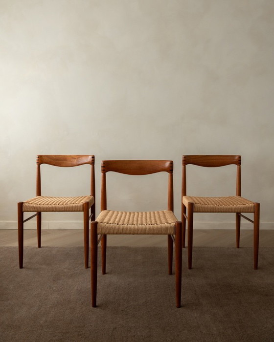 This set has a particularly warm, easy presence. The teak has a rich tone, and the woven paper cord seats suit the design beautifully. Around a teak or oak dining table, in a more classic Danish interior, or even in a quieter contemporary space, they bring exactly the kind of honest materiality that makes vintage Danish furniture so enduring. With only three chairs, this set is especially well suited as a flexible breakfast-table group, desk chairs, or to mix with a larger dining set.