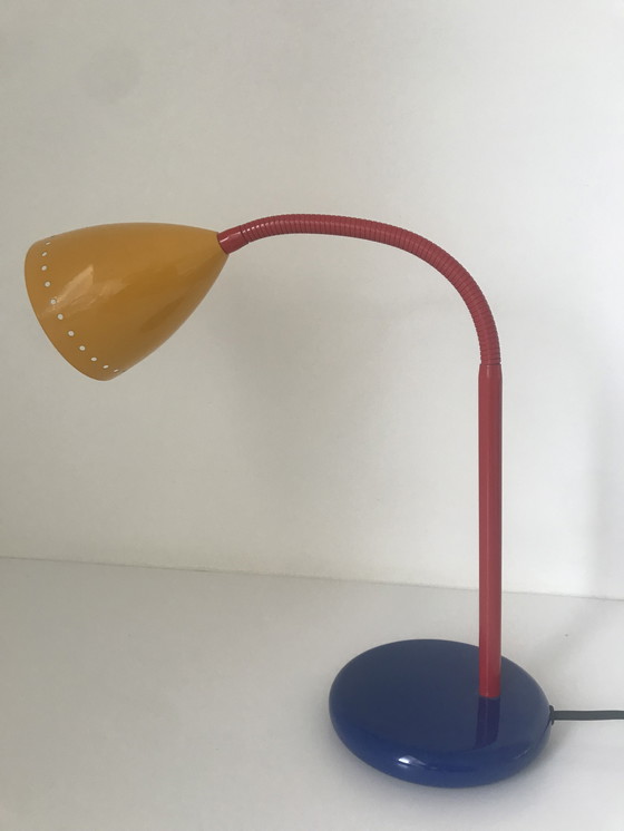 Vintage Happy Light - Modello 54023 - Stile Memphis - Design Olandese - Lampada da tavolo - Anni '80 - Lampada da scrivania. Il collo d'oca consente di ruotare il faretto in qualsiasi posizione desiderata. Questa lampada è in splendide condizioni vintage. Un elemento decorativo elegante e funzionale per qualsiasi interno. Attacco E14.