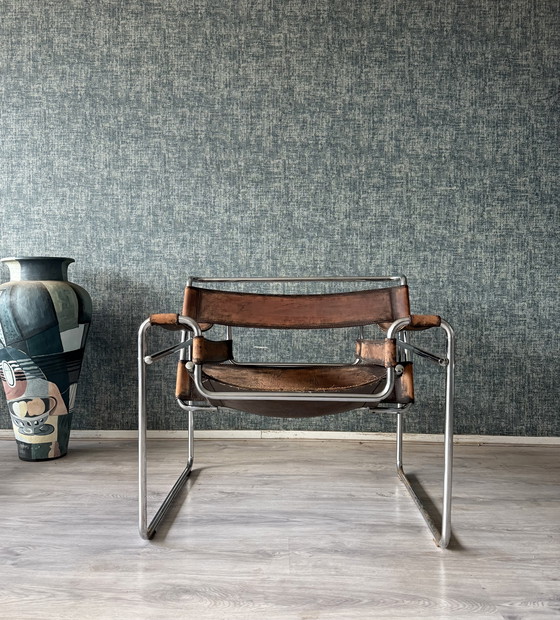 Vintage Marcel Breuer, sedia Wassily, patinata, Italia - anni '60