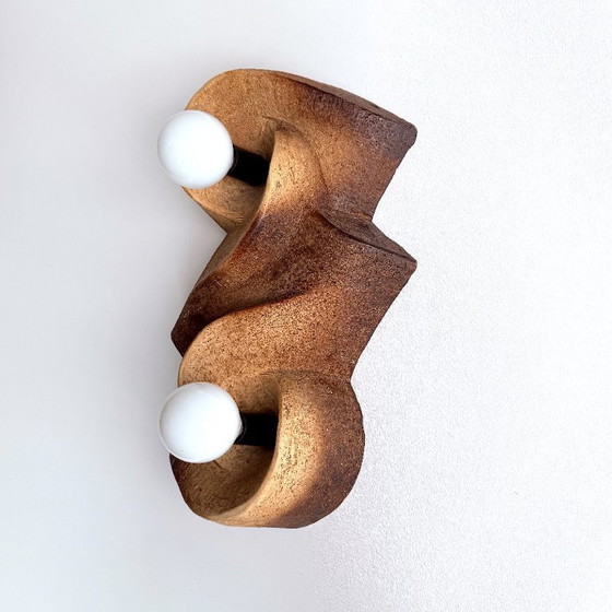 Diese beeindruckende Vintage-Wandleuchte aus den 60er und 70er Jahren verkörpert ein biomorphes Design, das sowohl brutalistische als auch Space Age-Elemente vereint. Die Leuchte besteht aus hochwertiger Keramik und zeigt eine faszinierende Kombination aus Braun-, Beige- und Schwarztönen, die jedem Raum eine warme und einladende Atmosphäre verleihen.