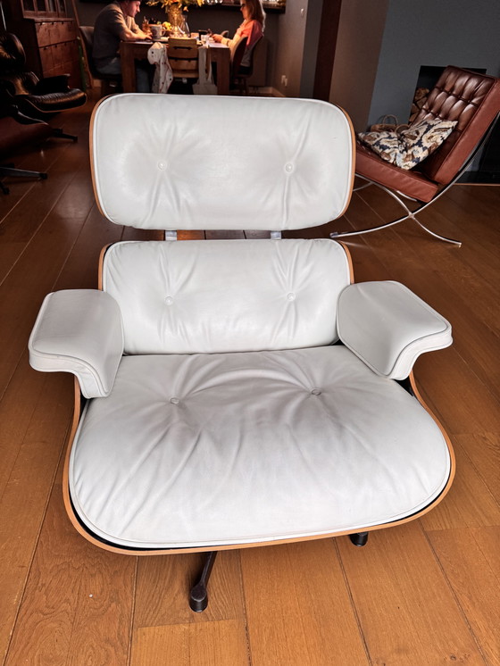 Scopri questa iconica poltrona Eames Lounge Chair di Vitra del 2007, un vero classico. Con la sua elegante pelle bianca e le eleganti finiture in legno, questa sedia è più di un semplice elemento d'arredo: è un'espressione di stile e comfort.