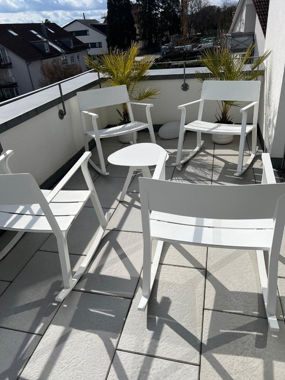 Vendo quattro sedie a dondolo "FLOW" di alta qualità di WEISHÄUPL in una splendida finitura bianca. Queste sedie si distinguono per il design moderno e l'eccezionale comfort, ideali per patio, balcone, giardino o soggiorno.
