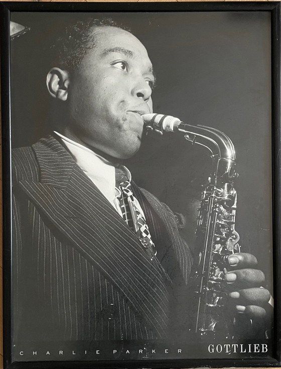 Questo grande poster in bianco e nero incorniciato cattura il leggendario musicista jazz Charlie Parker attraverso l'obiettivo di William P. Gottlieb, uno dei più rinomati fotografi jazz. L'immagine emana un'eleganza senza tempo, rendendola un'aggiunta sorprendente a qualsiasi spazio, che sia per un appassionato di jazz, un collezionista o un ammiratore della fotografia classica. Il poster è in buone condizioni, mentre la cornice mostra qualche segno di usura nella parte inferiore, che ne accresce il fascino vintage. Un'opportunità unica per possedere un pezzo iconico della storia del jazz.