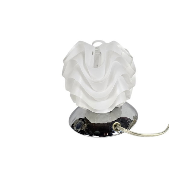 Questa elegante lampada da tavolo di Wofi Leuchten, prodotta in Germania, emana un fascino raffinato che si adatta perfettamente a un interno moderno. Il design anni '90 combina una base cromata lucida con un paralume in plastica, creando un look giocoso ma sofisticato.
