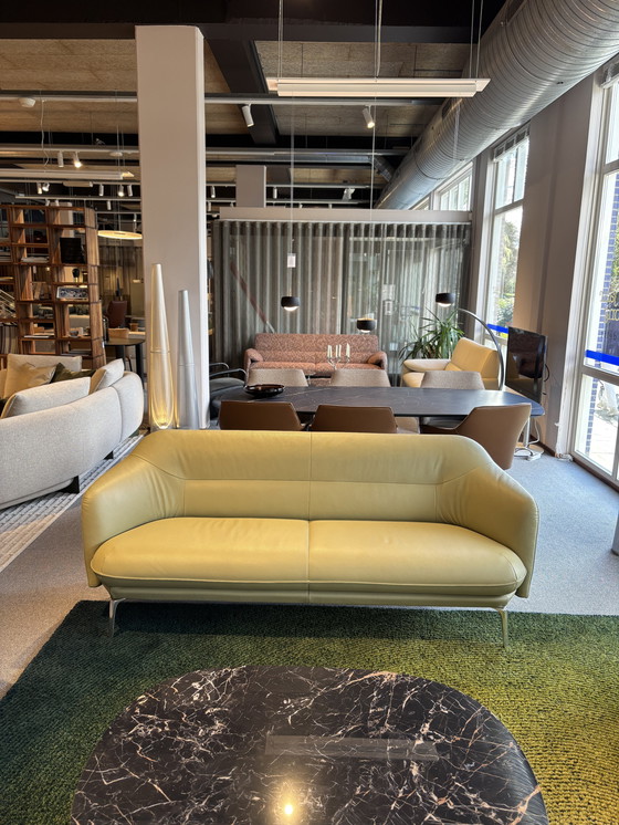 1 divano Lindo a 3 posti di Leolux. Completamente rivestito in pelle Senso Wasabi 4980. Gambe in alluminio lucidato, altezza standard 19 cm. Profondità seduta: cm.